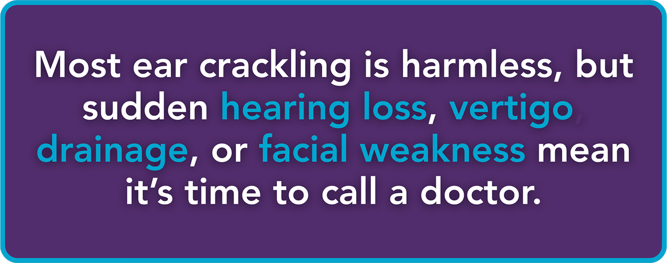 Sometimes the crackling in your ear is coming from an area near the ear, or a more specific medical condition. If the crackling conditions continue, consider one of the following: