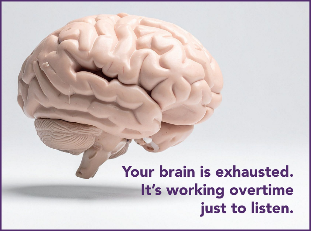 Your brain is exhausted. It’s working overtime just to listen.